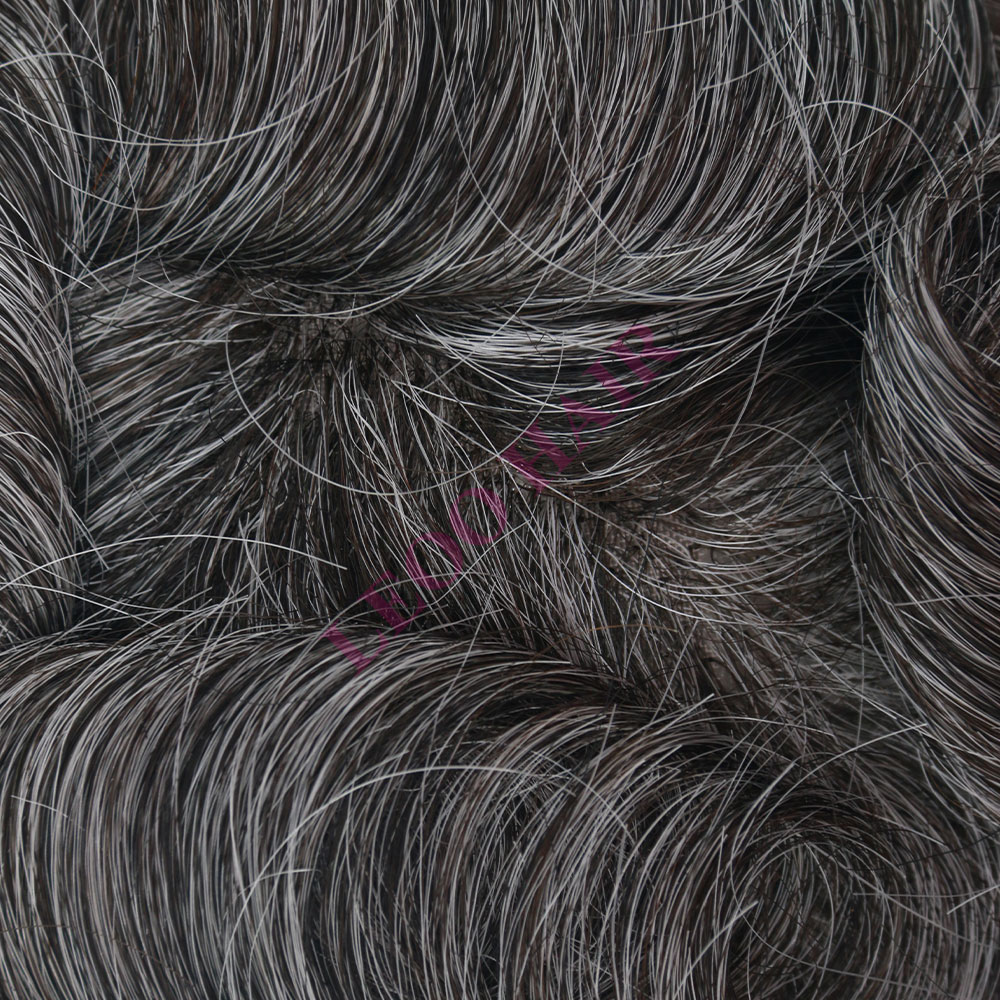 The human hair men's toupee is meticulously crafted with a breathable and durable mono lace top. The clear PU coverage ensures easy taping and cleaning, while the 100% human hair seamlessly blends with your natural hair, creating a look that is indistinguishable from your own.