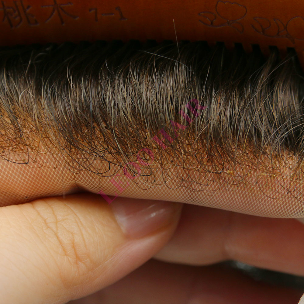 The 0.11 welded lace base toupee is designed to be both breathable and durable. The full hand knotting technique ensures that the hair is securely tied to the base, reducing hair shedding. The welded lace material used in The toupee not only maintains breathability but also enhances longevity.