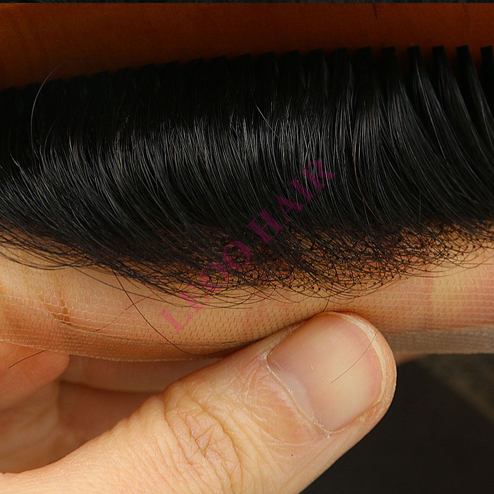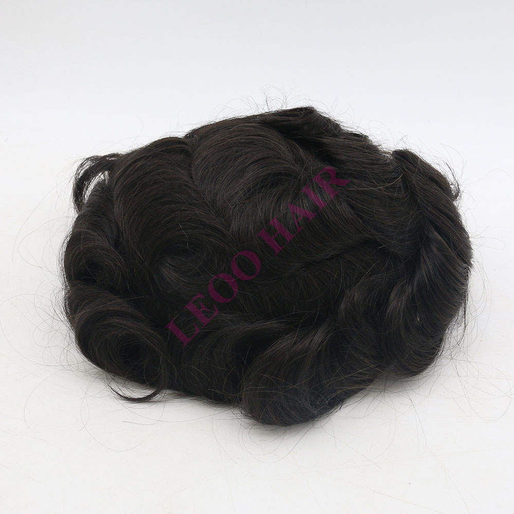 The VER men’s toupee boasts a combination of a mono top and PU base, complemented by a laced front for added realism. The durable mono top ensures longevity, while the PU coverage simplifies the application and maintenance process, making it convenient to attach with tape and clean when needed.