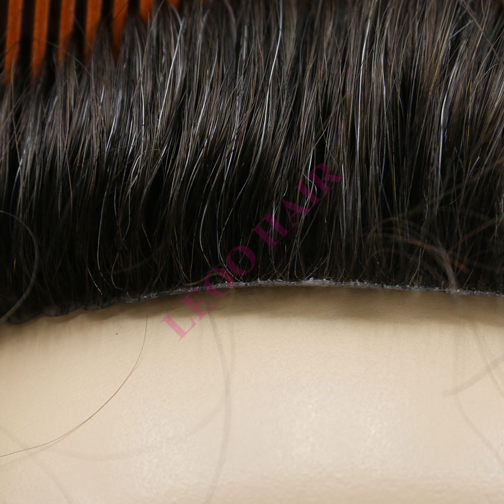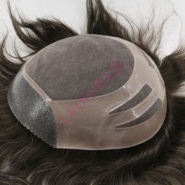 The bond system in this hairpiece comprises of a combination of a mono lace and PU base, which offers a unique blend of breathability and durability. The mono top design ensures that your scalp stays cool and comfortable throughout the day, while the PU perimeter simplifies maintenance, making it straightforward to apply tape and clean the hairpiece when necessary.