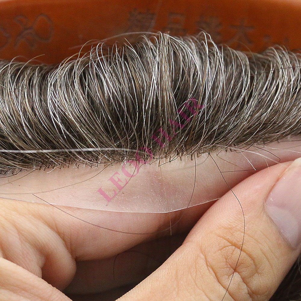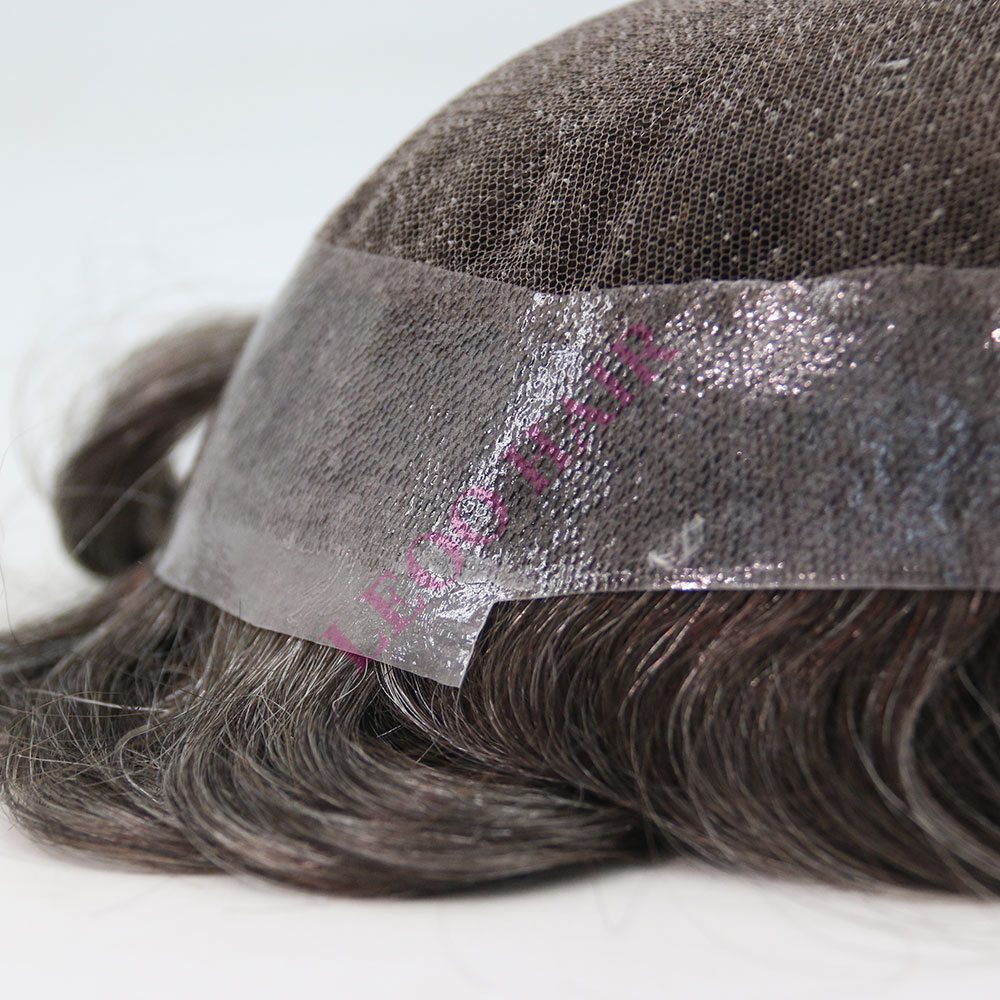 The AUS hair system features a lace top with clear PU around it. The lace top design ensures breathability and durability of the hair system. With one inch of PU around, it becomes easy to tape and clean. The hand knotting technique tightly secures the hair on the base, reducing hair shedding.