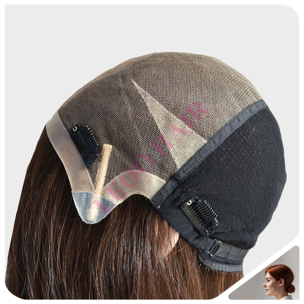 BASE: Custom women's wig front NPU + top Swiss lace + side elastic net. NPU is easy to wear and clean. Swiss lace ensures breathable. The elastic net is easy to adjust and wear.