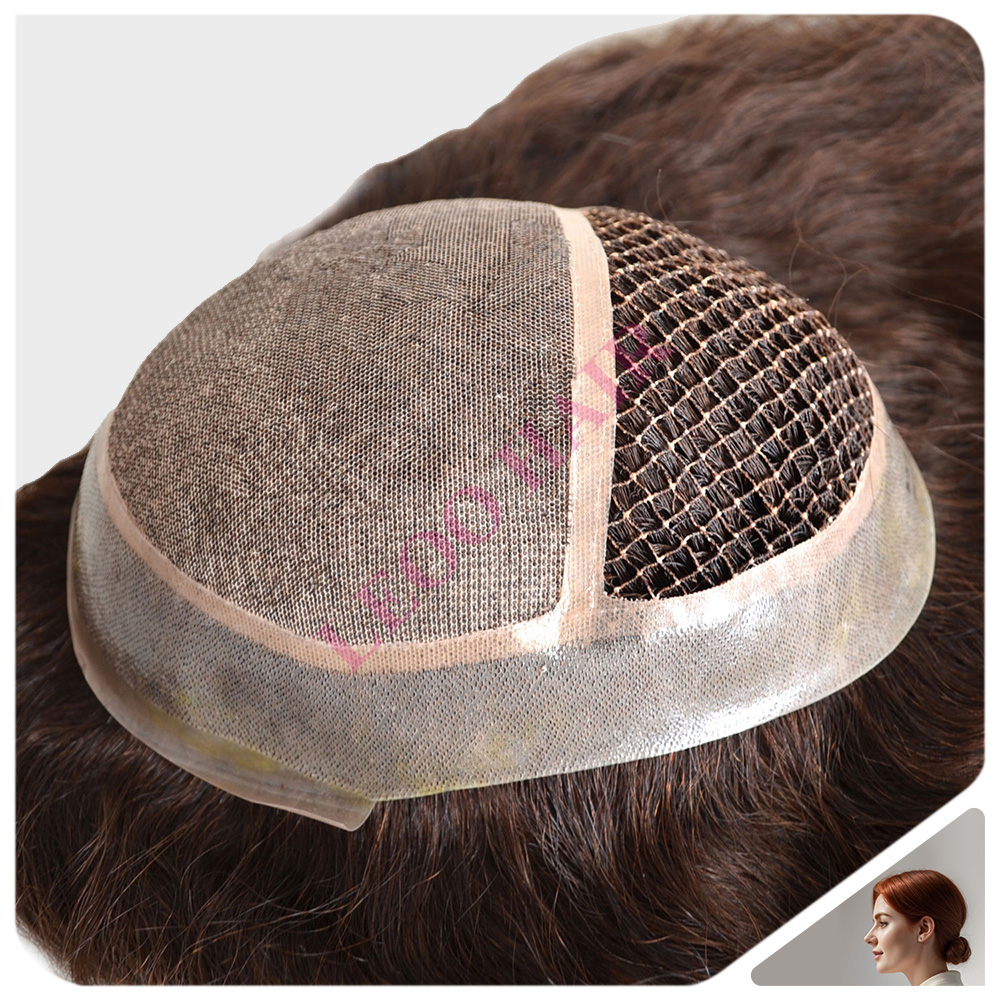 The topper features a silk base with fishnet and PU around the edges, offering the benefits of breathability and a natural appearance as if the hair is growing from a real scalp. The PU coverage makes it easy to apply tape and clean.