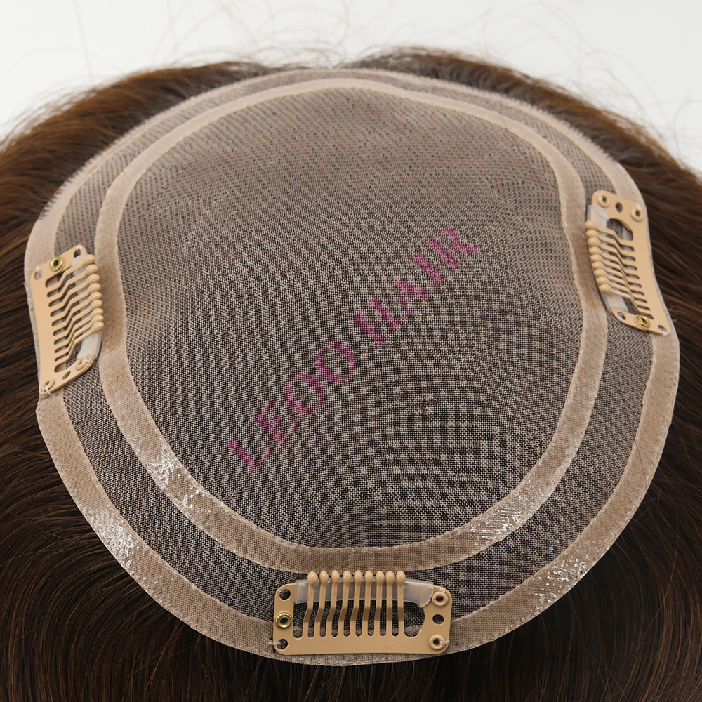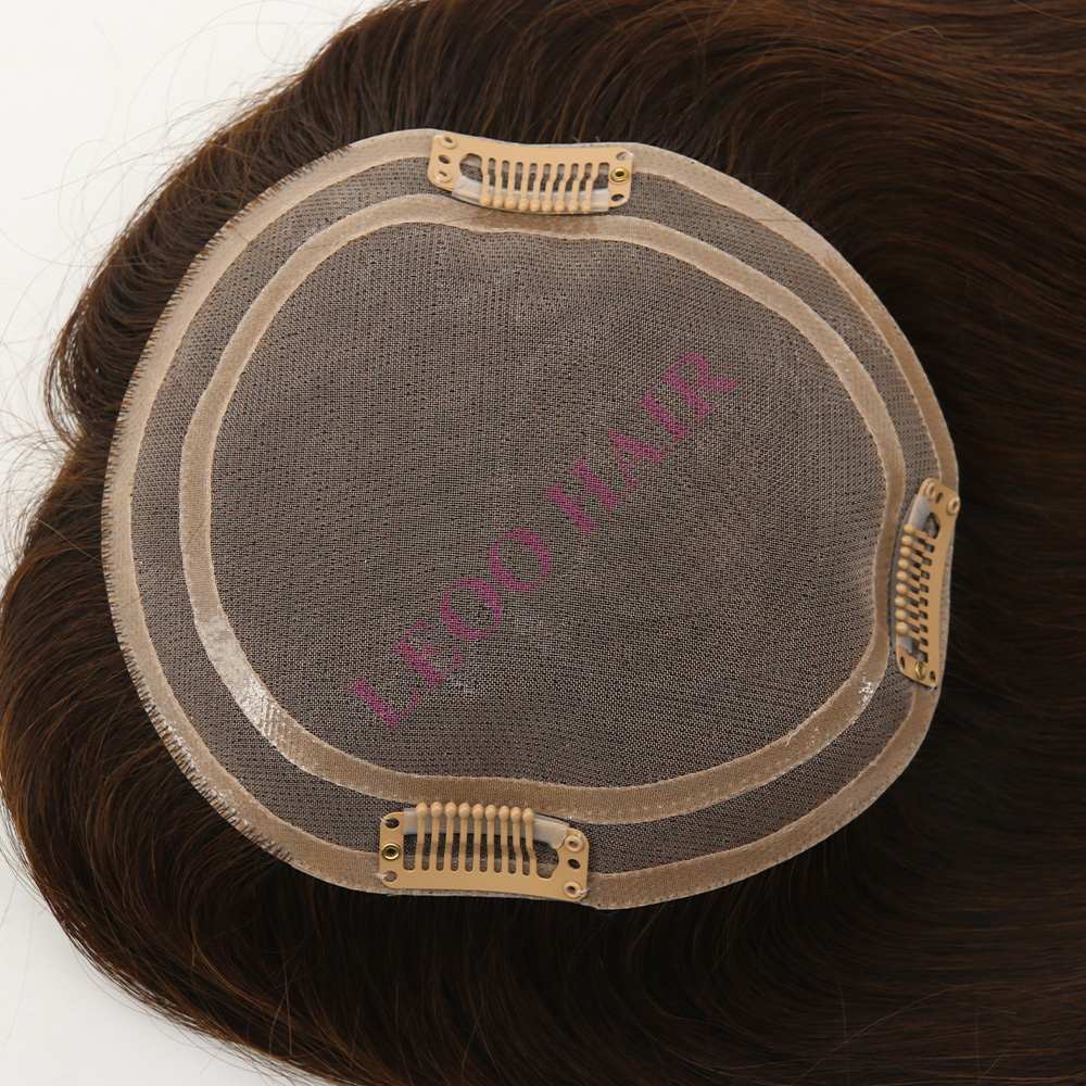 BASE: Mono with 2 Circle NPU around Topper, base size:5.5x6inch available. This women's topper is designed for women who suffer slight hair thinning in small areas on top. Clips on the topper are very easy to wear. In that way, you could get an instant hair transformation.