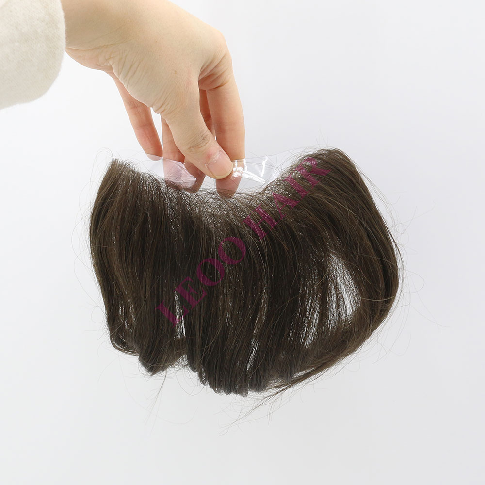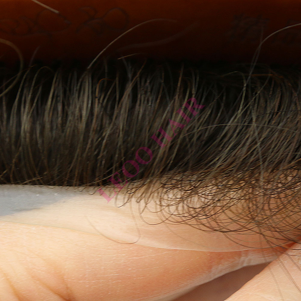 BASE: Vloop completo de PU para postizo frontal personalizado para hombre. El diseño artesanal en V permite que la línea frontal del cabello luzca imperceptible.