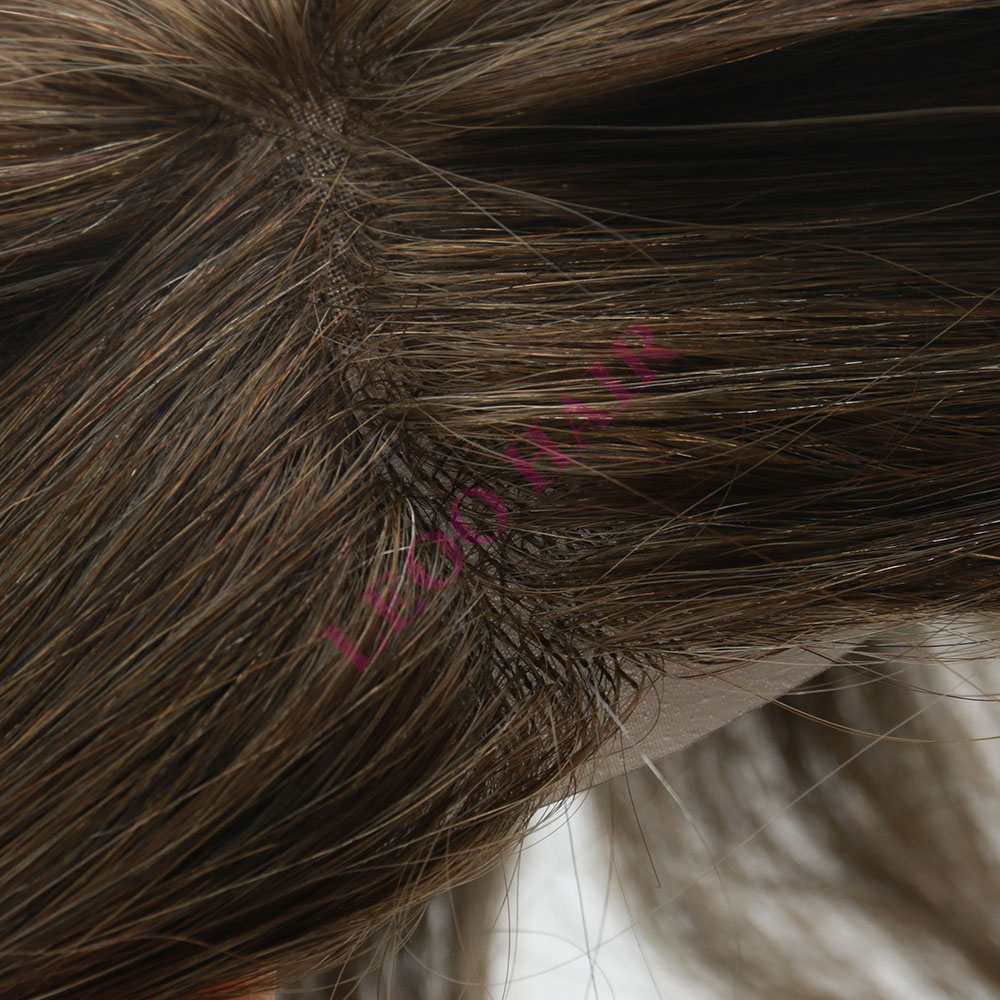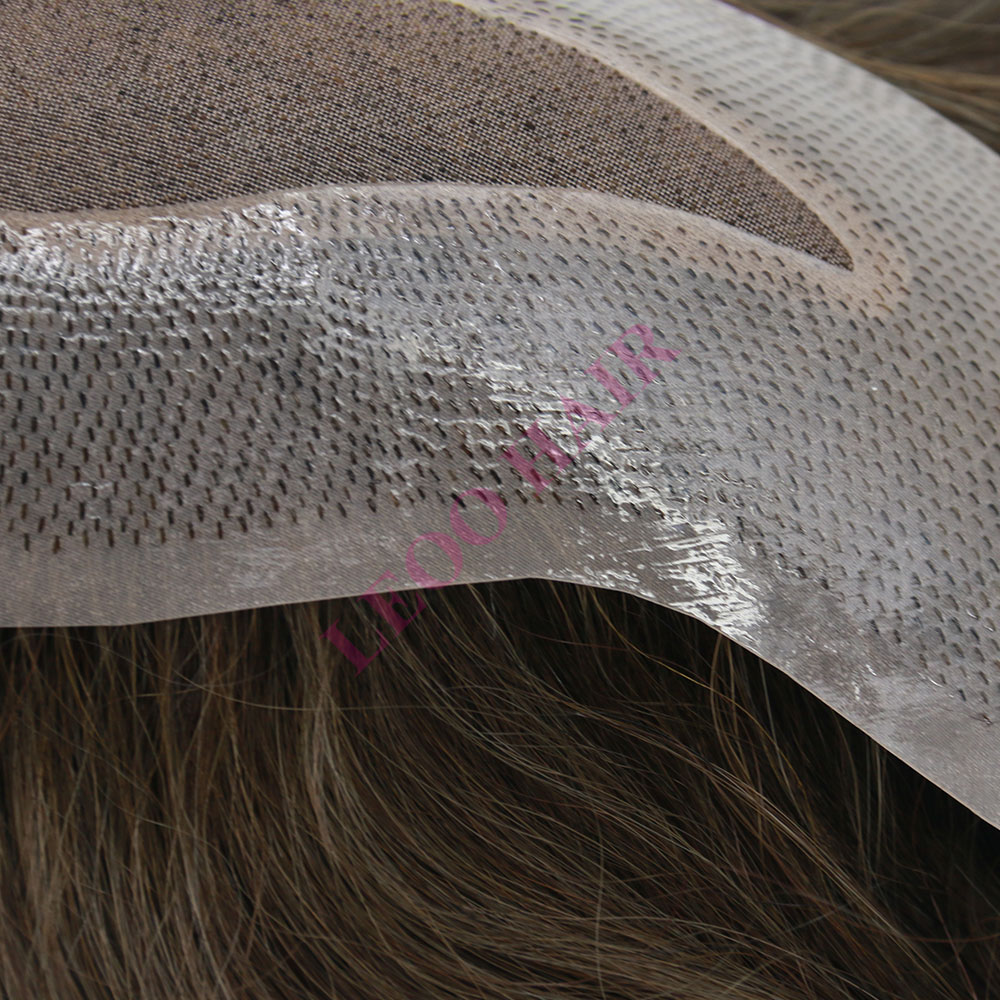 BASE: Pieza frontal personalizada con encaje monofilamento y PU alrededor. El encaje monofilamento es transpirable y duradero. El PU alrededor facilita la colocación y limpieza del postizo.