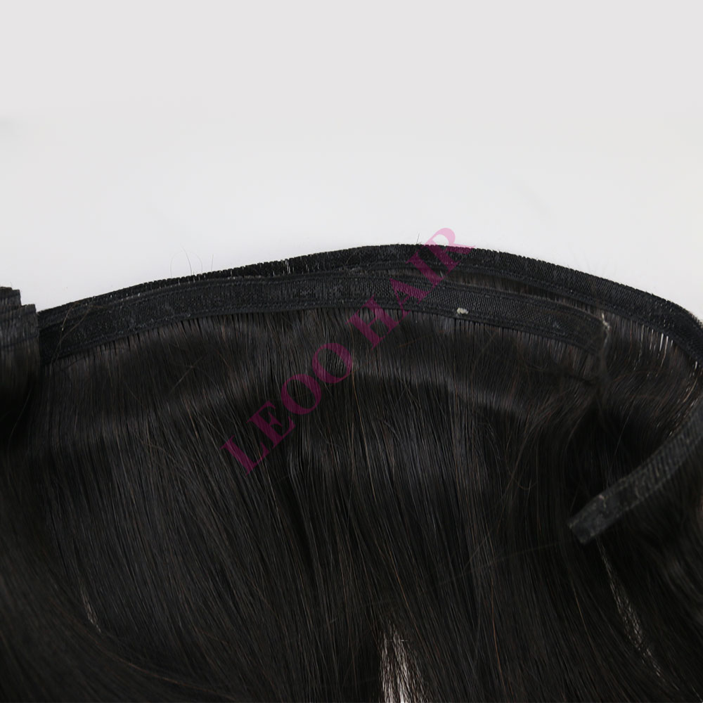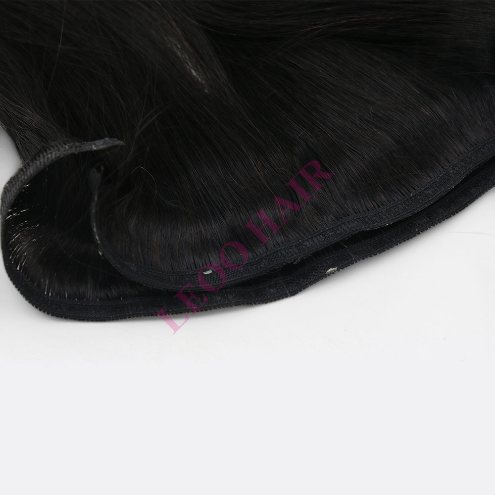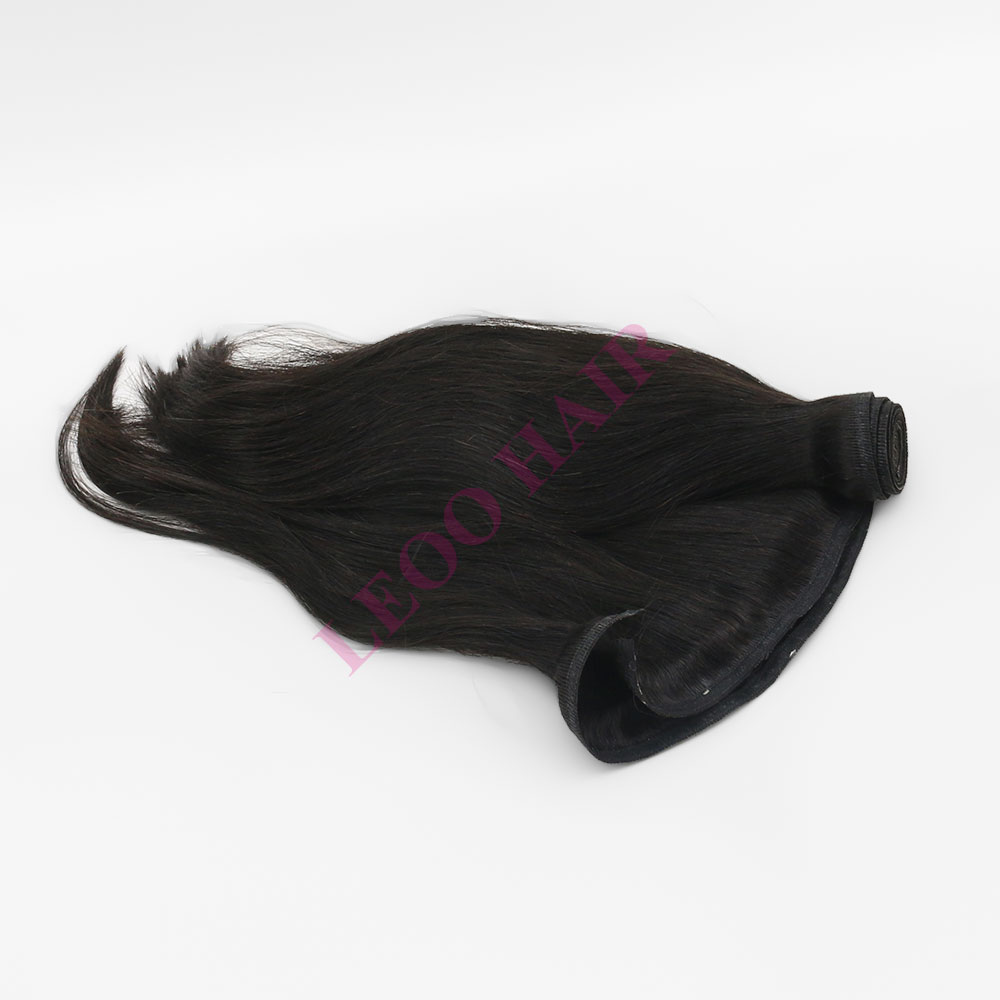 - Las extensiones de cabello humano de trama plana se pueden usar de múltiples maneras, como cosidas directamente, con clips, pegamento o microperlas. Dos líneas de costura son fuertes y flexibles y le permiten cortar el tejido del cabello a cualquier ancho sin temor a que el cabello del borde se caiga.