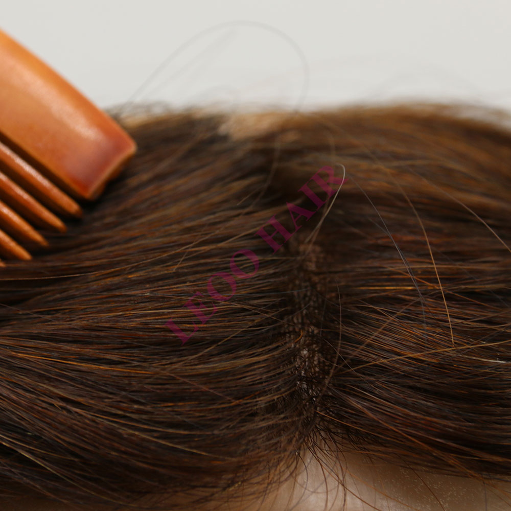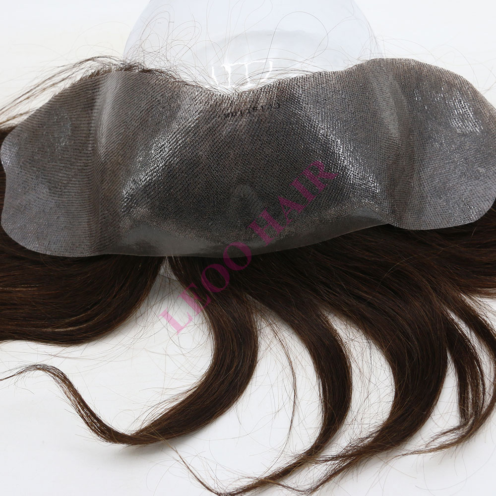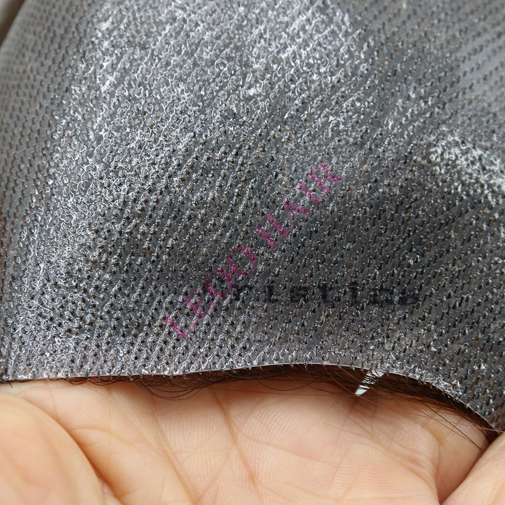 BASE: Nudos de PU para postizo frontal personalizado para mujer. El tejido anudado es duradero y está firmemente sujeto a la base.