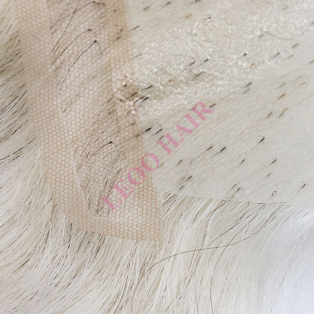 BASE: Postizo frontal personalizado de encaje suizo estrecho con parte posterior de PU para mujer. El encaje suizo es invisible y transpirable. La parte posterior de PU facilita la colocación y limpieza del postizo.